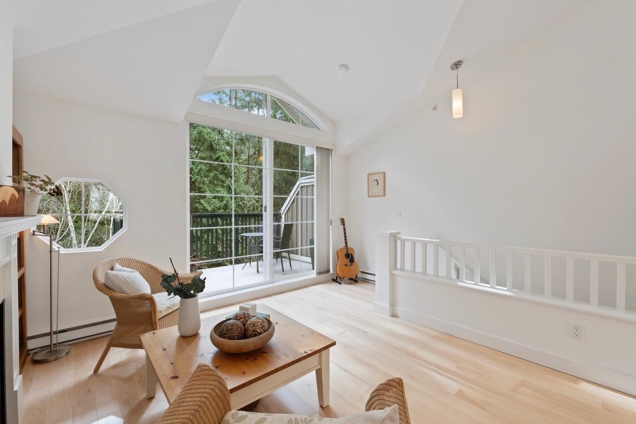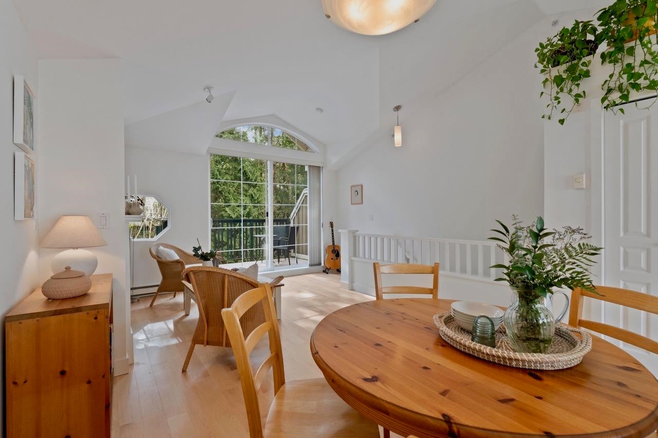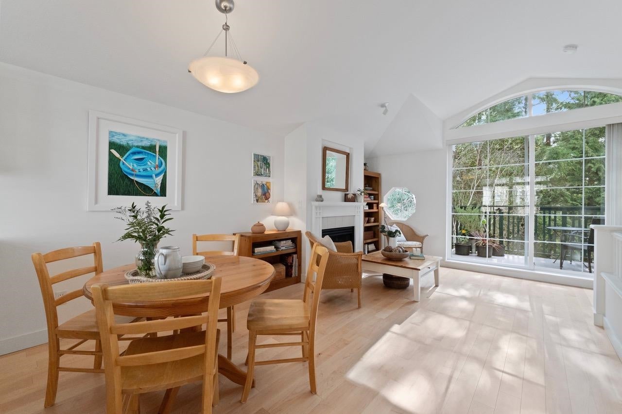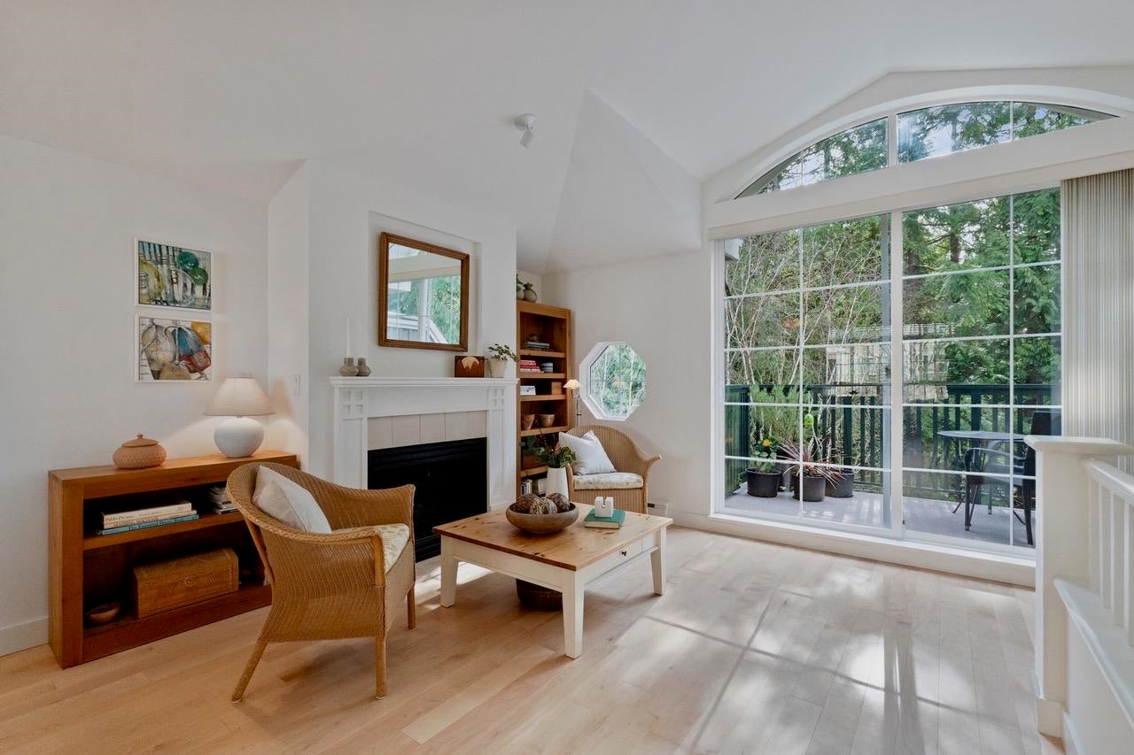 The Pemberley UBC. Rare find. Much sought after unique location. Live in this light filled t/h w/beautiful views to nature. Walk serene forest trails in Pacific Spirit Park Near schools, shopping, restaurants & UBC academic, recreation, & cultural facilities. 2 Br, 2 Bth w/ vaulted ceilings & large windows overlooking the landscaped award winning courtyard, w/ gorgeous Katsura & magnolia trees & flowering shrubs. High quality h/w floors & wool carpet on the stairs, 9' ceilings on lower level & recently painted. Baths & kitchen renovated w/ quartz countertops, under mounted sinks & Grohe fixtures. The unit also has updated lighting, cozy gas f/p, private Lrm deck. Extra storage in the unit, 2 parking, EV charging, pets ok, storage locker & fibre optic avail.