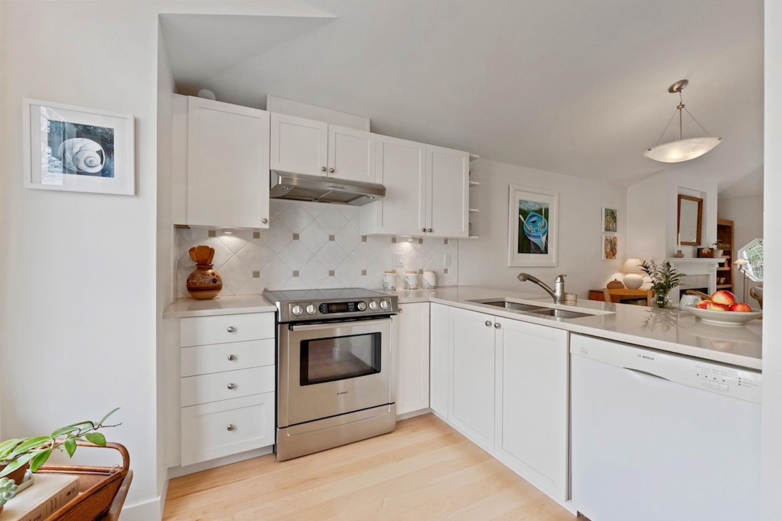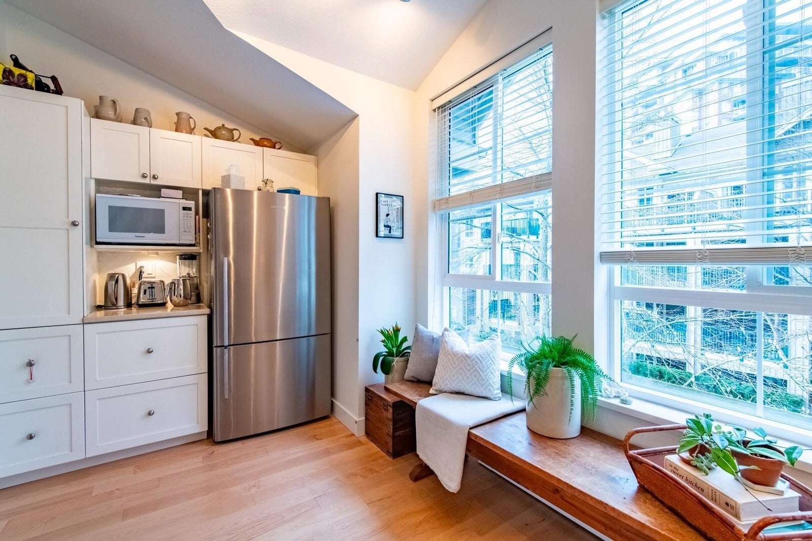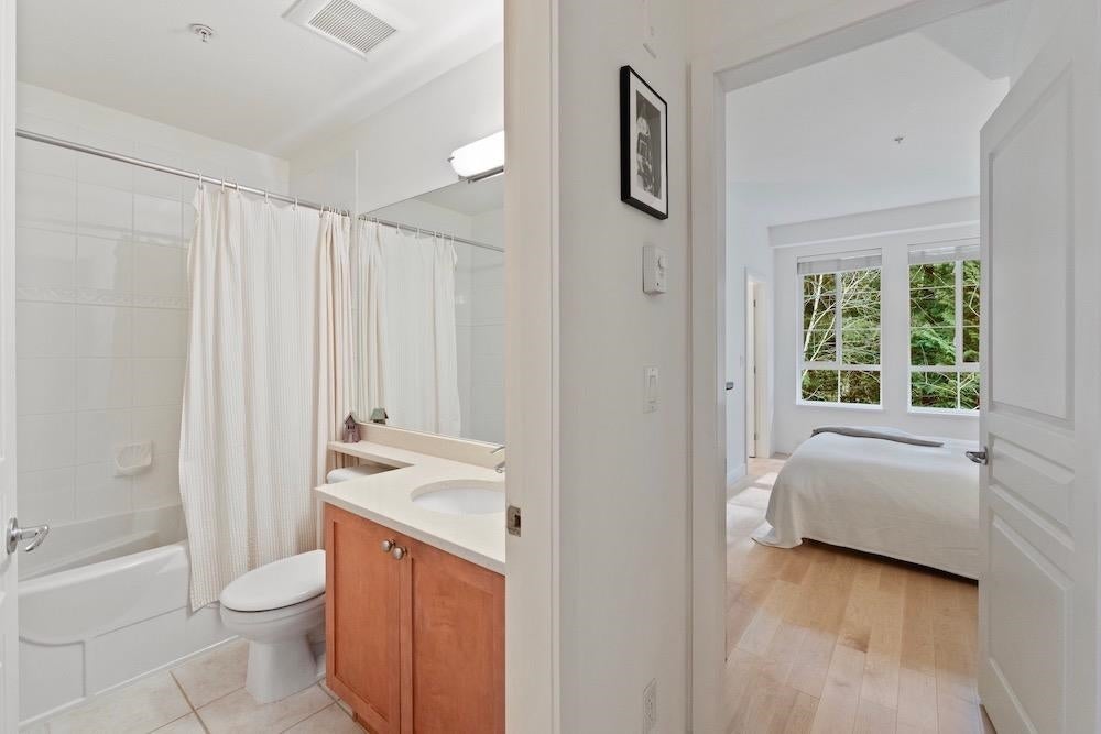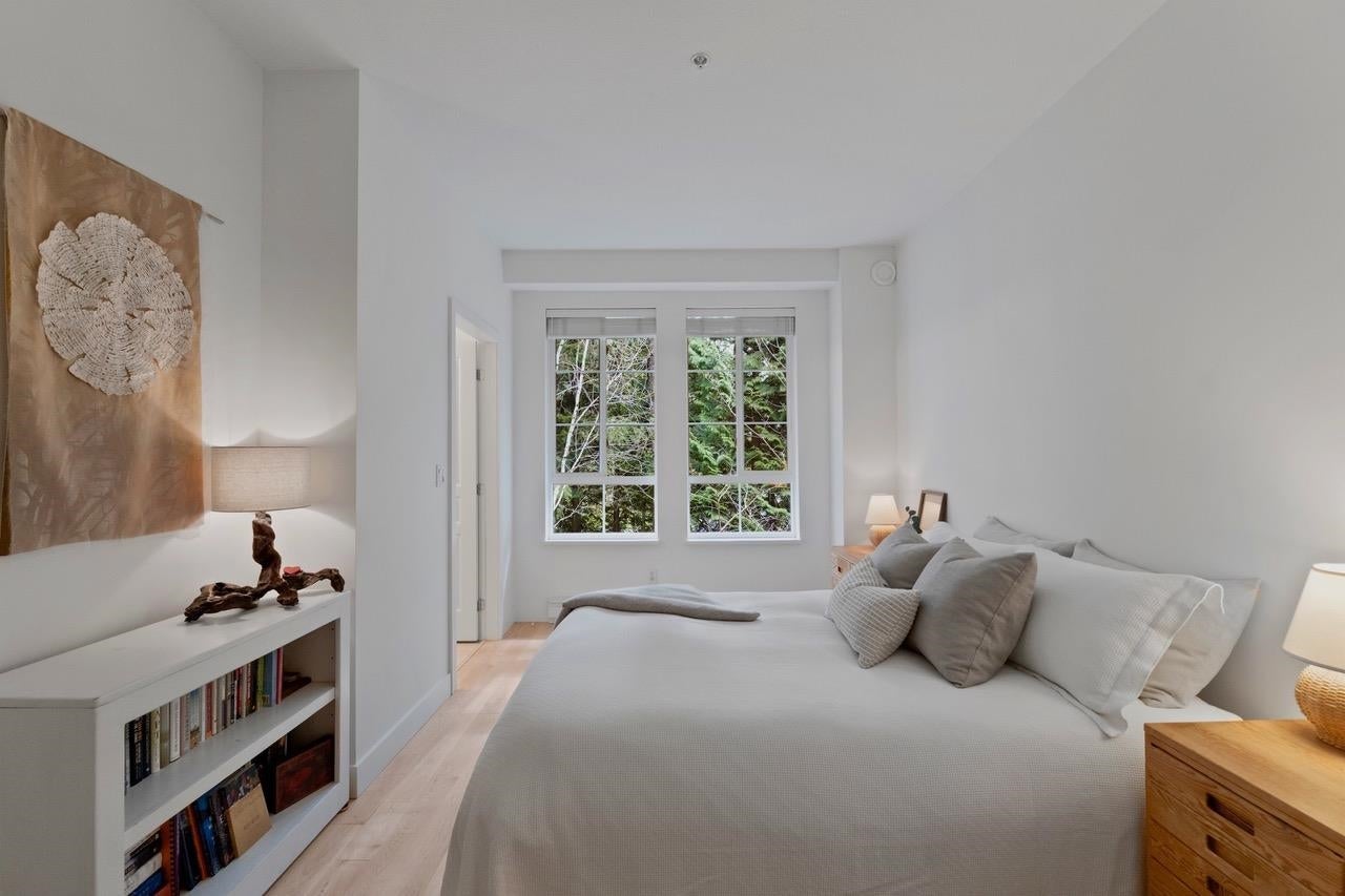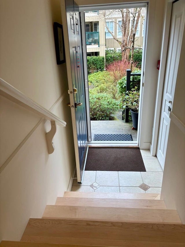 The Pemberley UBC. Rare find. Much sought after unique location. Live in this light filled t/h w/beautiful views to nature. Walk serene forest trails in Pacific Spirit Park Near schools, shopping, restaurants & UBC academic, recreation, & cultural facilities. 2 Br, 2 Bth w/ vaulted ceilings & large windows overlooking the landscaped award winning courtyard, w/ gorgeous Katsura & magnolia trees & flowering shrubs. High quality h/w floors & wool carpet on the stairs, 9' ceilings on lower level & recently painted. Baths & kitchen renovated w/ quartz countertops, under mounted sinks & Grohe fixtures. The unit also has updated lighting, cozy gas f/p, private Lrm deck. Extra storage in the unit, 2 parking, EV charging, pets ok, storage locker & fibre optic avail.