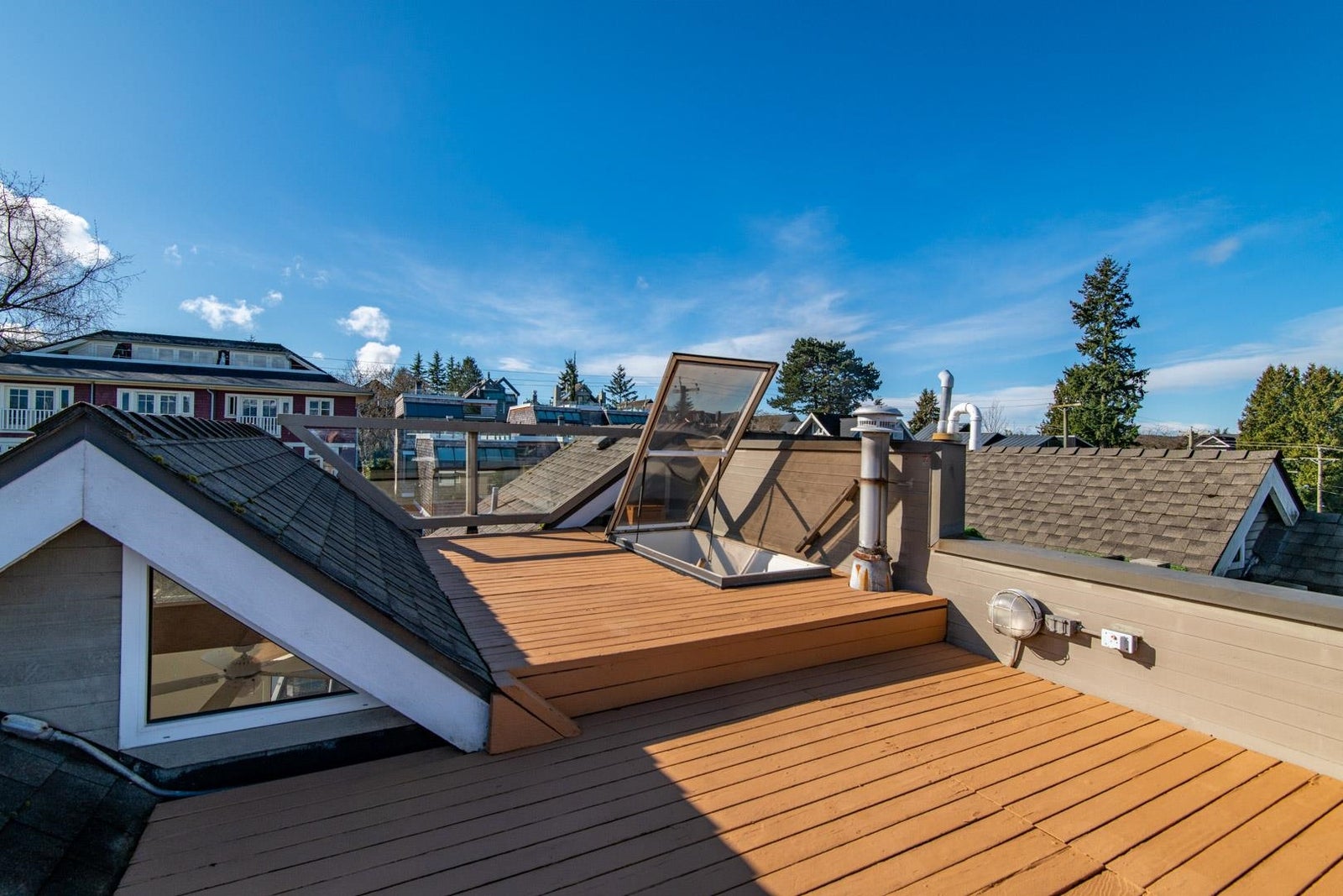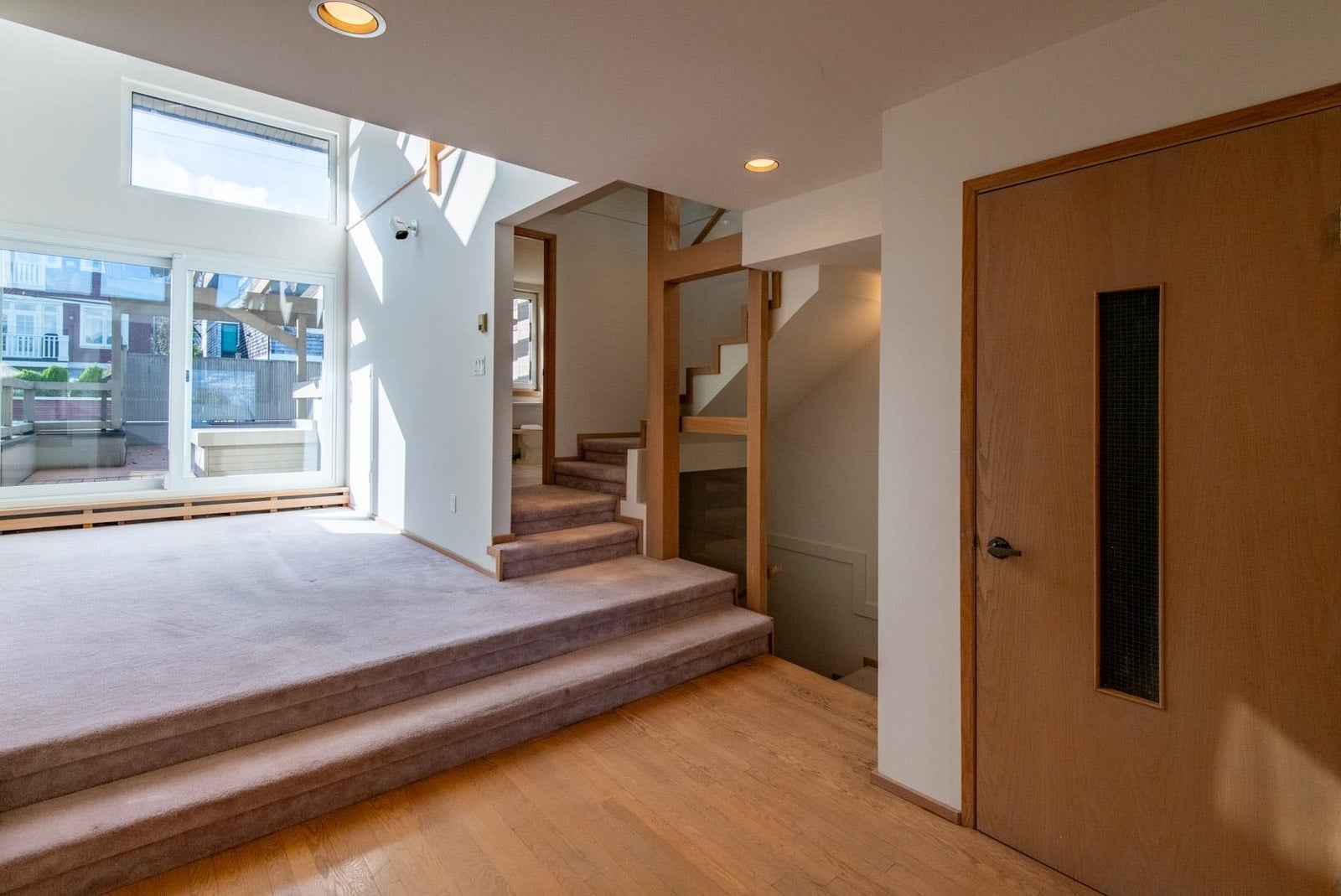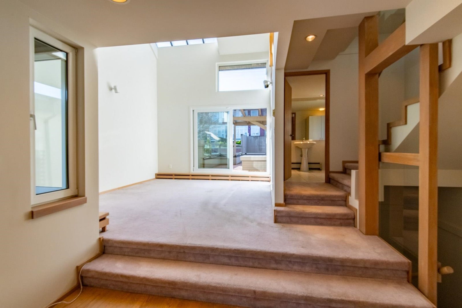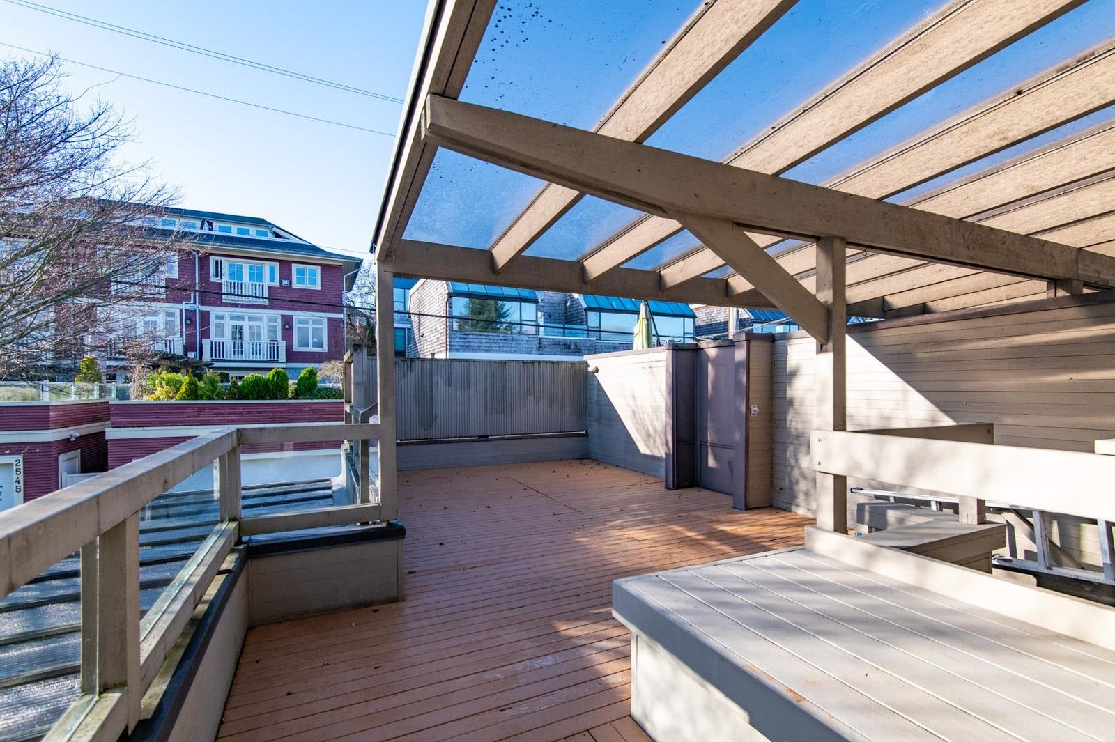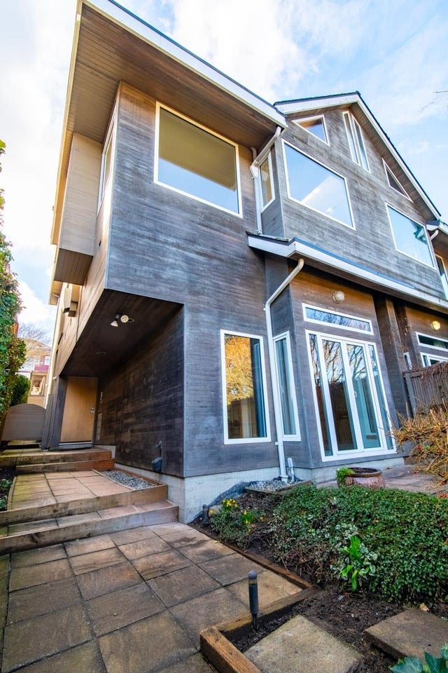 This architect designed, west coast modern, 1/2 duplex w/ spectacular views is on a 4 level split plan w/ 2400 s.f., 3brs, 4bths, open plan, soaring ceilings & huge windows & skylights for abundant natural light. The bright kitchen w/ fabulous views is ready for your creative touch w/ room for high end appliances, cabinets, island & countertops. The MBR has high ceilings, lots of closets, a huge enste bath & french doors to a priv. garden patio. It features radiant hot water heating w/ a gas boiler & 2 domestic HW tanks, a large crawl space for storage plus a garage & carport. It has oak HW flrs, is rough in for an elevator & 3 decks gives outdoor space for entertaining or watching fireworks. Walk to 4th ave., Kits beach bike path & transit to UBC & downtown.