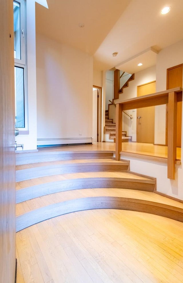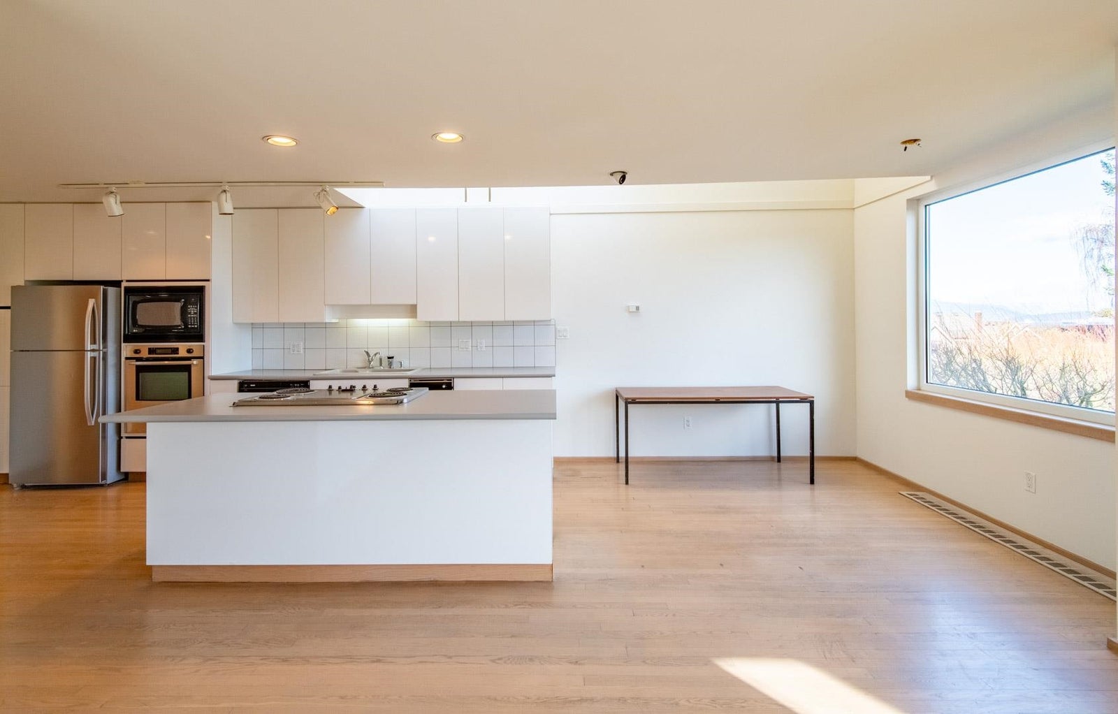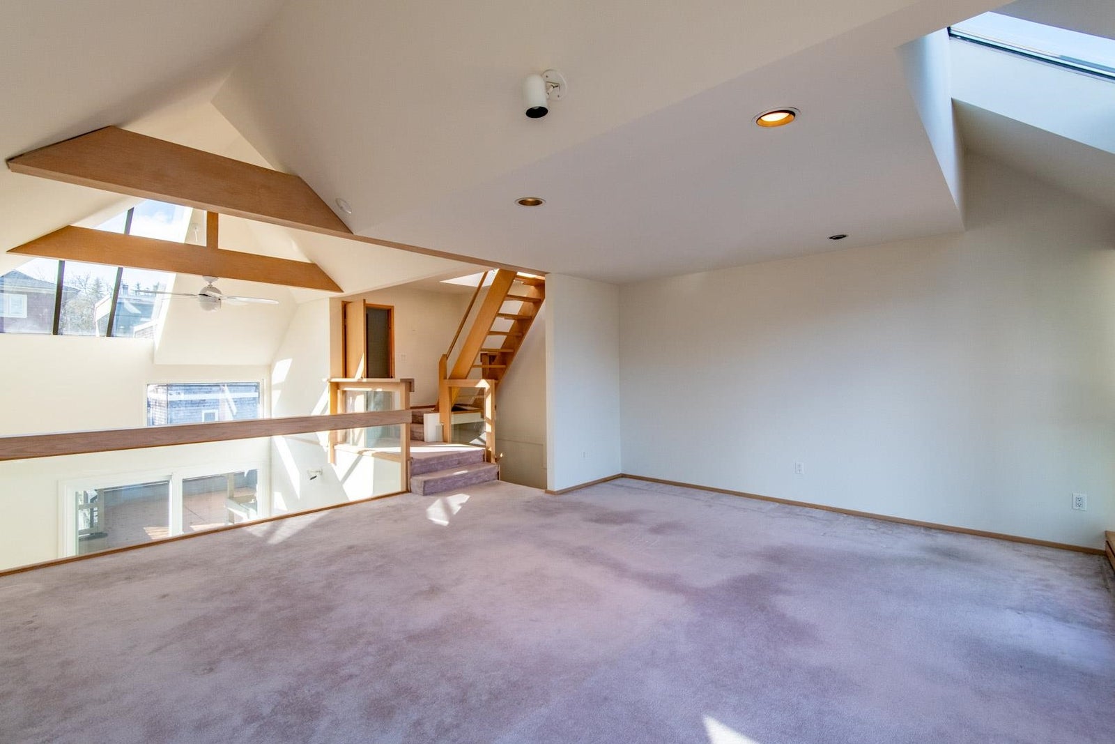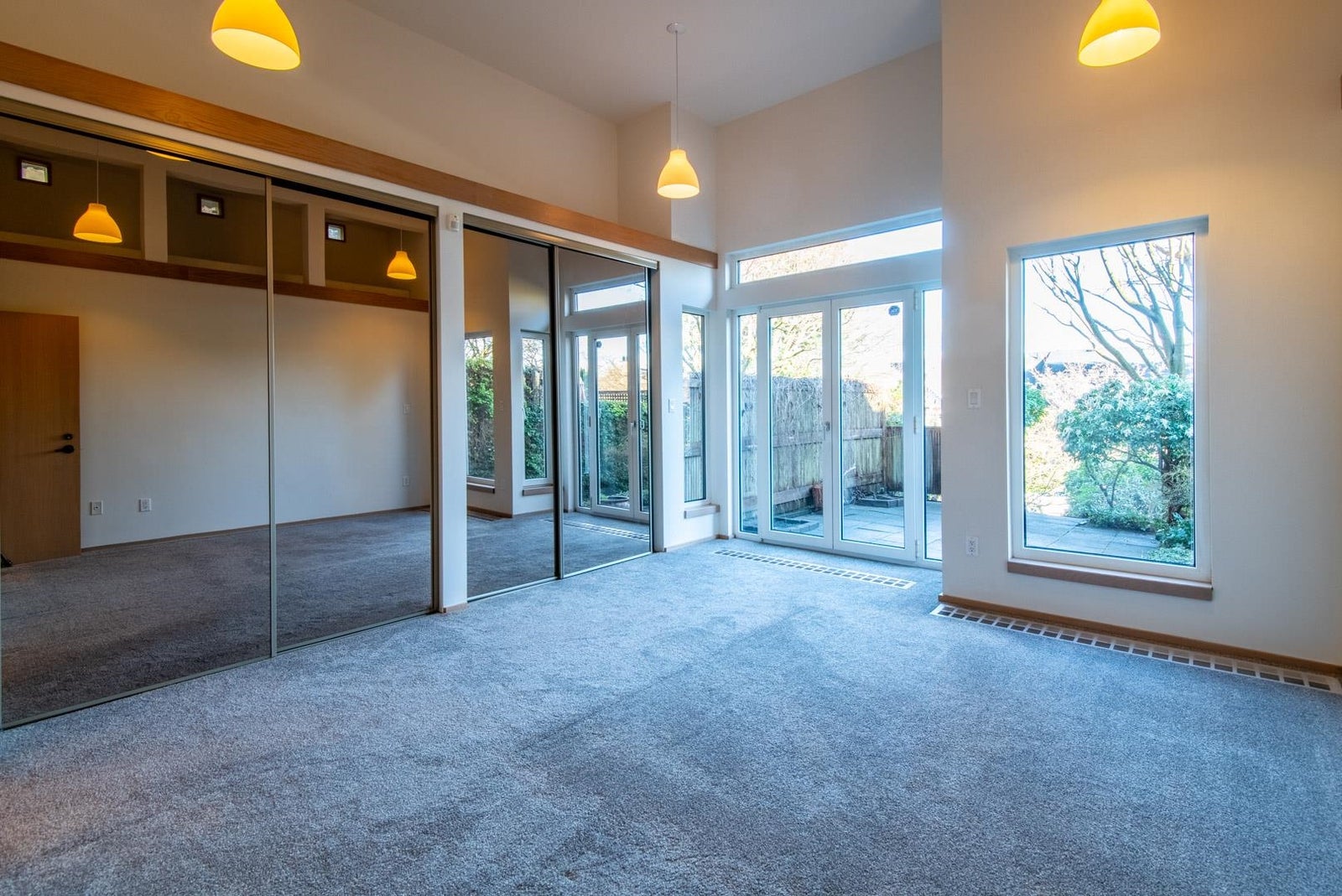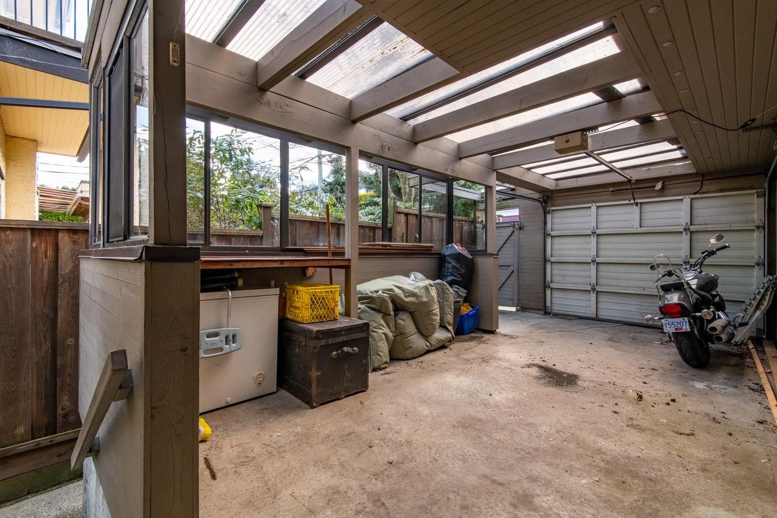 This architect designed, west coast modern, 1/2 duplex w/ spectacular views is on a 4 level split plan w/ 2400 s.f., 3brs, 4bths, open plan, soaring ceilings & huge windows & skylights for abundant natural light. The bright kitchen w/ fabulous views is ready for your creative touch w/ room for high end appliances, cabinets, island & countertops. The MBR has high ceilings, lots of closets, a huge enste bath & french doors to a priv. garden patio. It features radiant hot water heating w/ a gas boiler & 2 domestic HW tanks, a large crawl space for storage plus a garage & carport. It has oak HW flrs, is rough in for an elevator & 3 decks gives outdoor space for entertaining or watching fireworks. Walk to 4th ave., Kits beach bike path & transit to UBC & downtown.