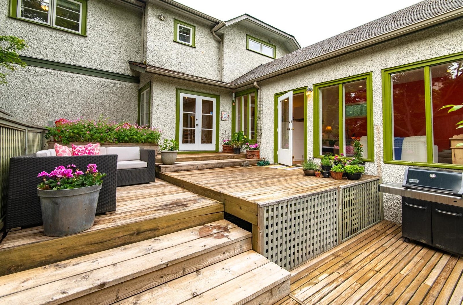 Charming Arbutus character home with modern upgrades & S/C suite on a quiet tree-lined street. Thoughtfully renovated top-floor addition by Farpoint Architecture (1999), w/ 5 BRs, 4 bths & blending vintage charm w/ modern comfort. Features inc. beautiful, refinished oak floors, stained glass windows, vaulted ceilings w/ skylights, & a private MBR w/ WiC, large enste bath & city/mountain views. Bright, spacious layout w/ skylit kitchen, & cozy family room w/ vaulted ceilings , opening onto private deck overlooking beautiful garden w/ mature trees & shrubs. Upgrades inc. roof, windows, electrical, furnace, flooring, paint, appliances, & more. An ideal family home only steps to top schools, parks, shops, restaurants, transit to UBC & YVR & a new French bakery. Single garage & tons of storage. Click here for more neighborhood information.