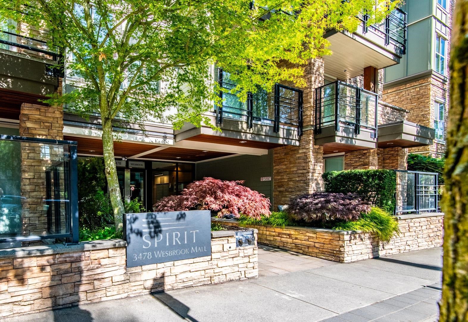 Penthouse living at “Spirit” by award-winning Adera in the heart of Wesbrook Village! Bright, spacious east- & north-facing corner unit with 2 BRs, 2 bths, & a versatile open den/study. Thoughtful layout w/ BRs on opposite ends for privacy. Fully renod kitchen & bths, 9' ceilings, high-end s/s appliances, quartz countertops, & premium finishes throughout. Enjoy a spacious balcony & 1 of only 7 exclusive private rooftop patios (over 400 sq?ft!) overlooking Pacific Spirit Forest—ideal for entertaining, container gardening, or simply soaking up the sun. Quiet concrete construction ensures peace & serenity. Includes 1 parking &, 1 storage. Access to a bike room. Steps to shops, restaurants, parks, community centre, & transit, top-rated school & UBC campus. Call your realtor to view! Click here for more neighborhood information